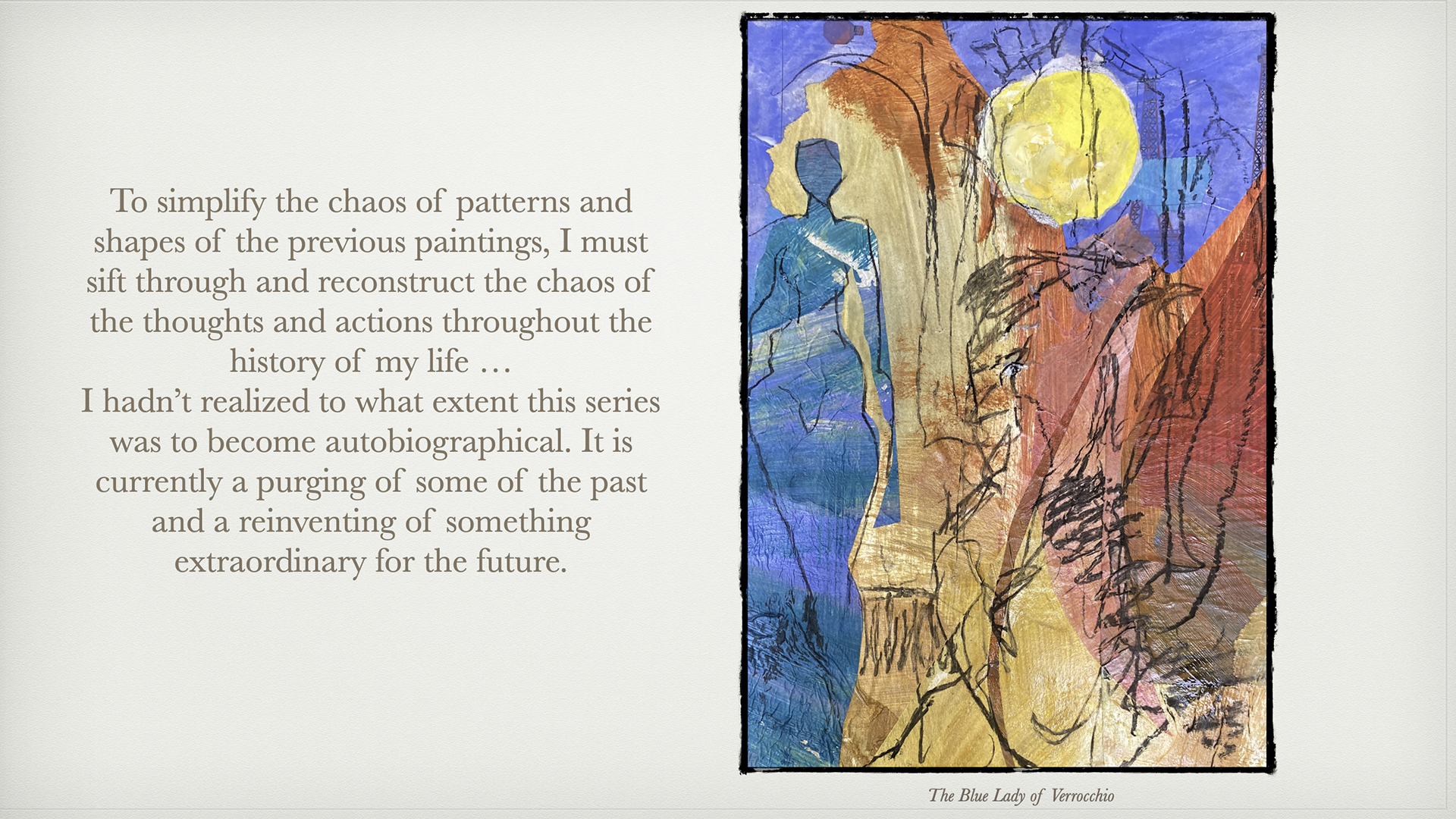 Very exciting time ahead! I catch a plane for Wales in early April to enjoy the beauty of spring and to teach again at Chapel Cottage Studio. In mid July I catch a plane for Tuscanny to attend the annual art retreat with Liz Hough at Verrocchio Art Center in Casole D'Elsa and to spend time with my muse, The Blue Lady of Verrocchio.